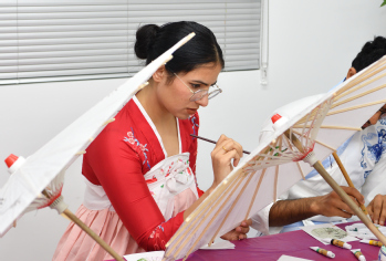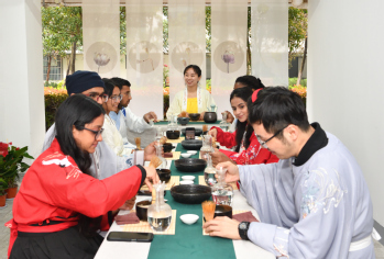 揭牌仪式后,以“邂逅中国风”为主题的2023年留学生中国传统文化体验活动在榴竹书院进行。留学生在专业老师的指导下,练书法、品茶道、画油纸伞,感受中国传统文化之美。