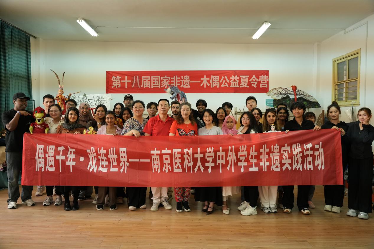 2025年5月22日,由国际教育学院与团委联合主办的“偶遇千年·戏连世界”中外学生非遗研学实践活动在江苏省演艺集团木偶剧团圆满落幕。本次活动以木偶戏为媒介,搭建起跨越国界的文化实践课堂,通过沉浸式体验与创新表达,让中国传统非遗艺术在年轻一代中焕发新生。