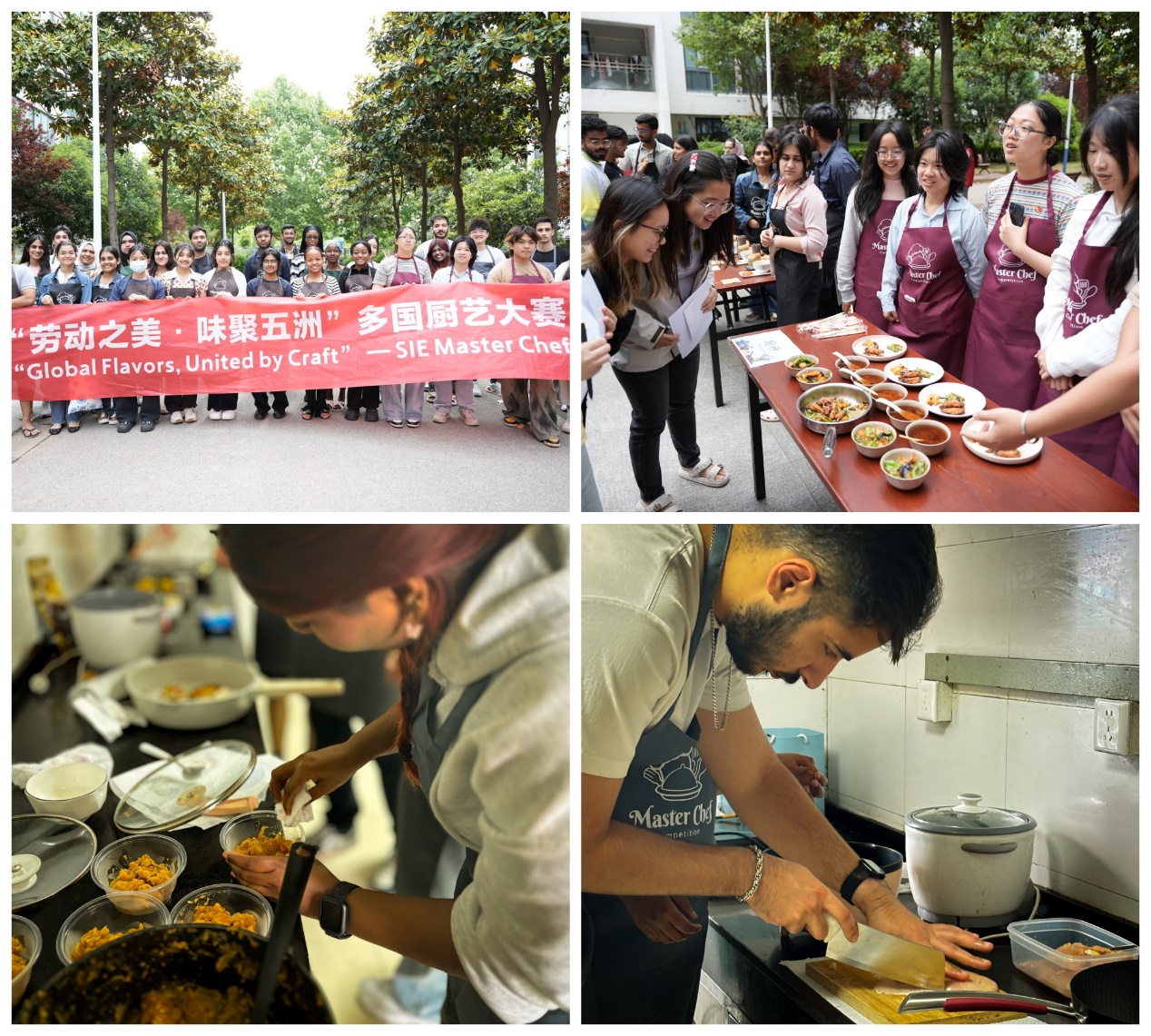 5月10日,我院举办第二届“劳动之美·味聚五洲”多国厨艺大赛。来自各个国家的留学生组成跨国烹饪团队,现场制作特色美食。活动通过美食文化的交流,让中外学生在品味美食的同时,切身感受到不同国家饮食文化的独特魅力和劳动精神的价值。