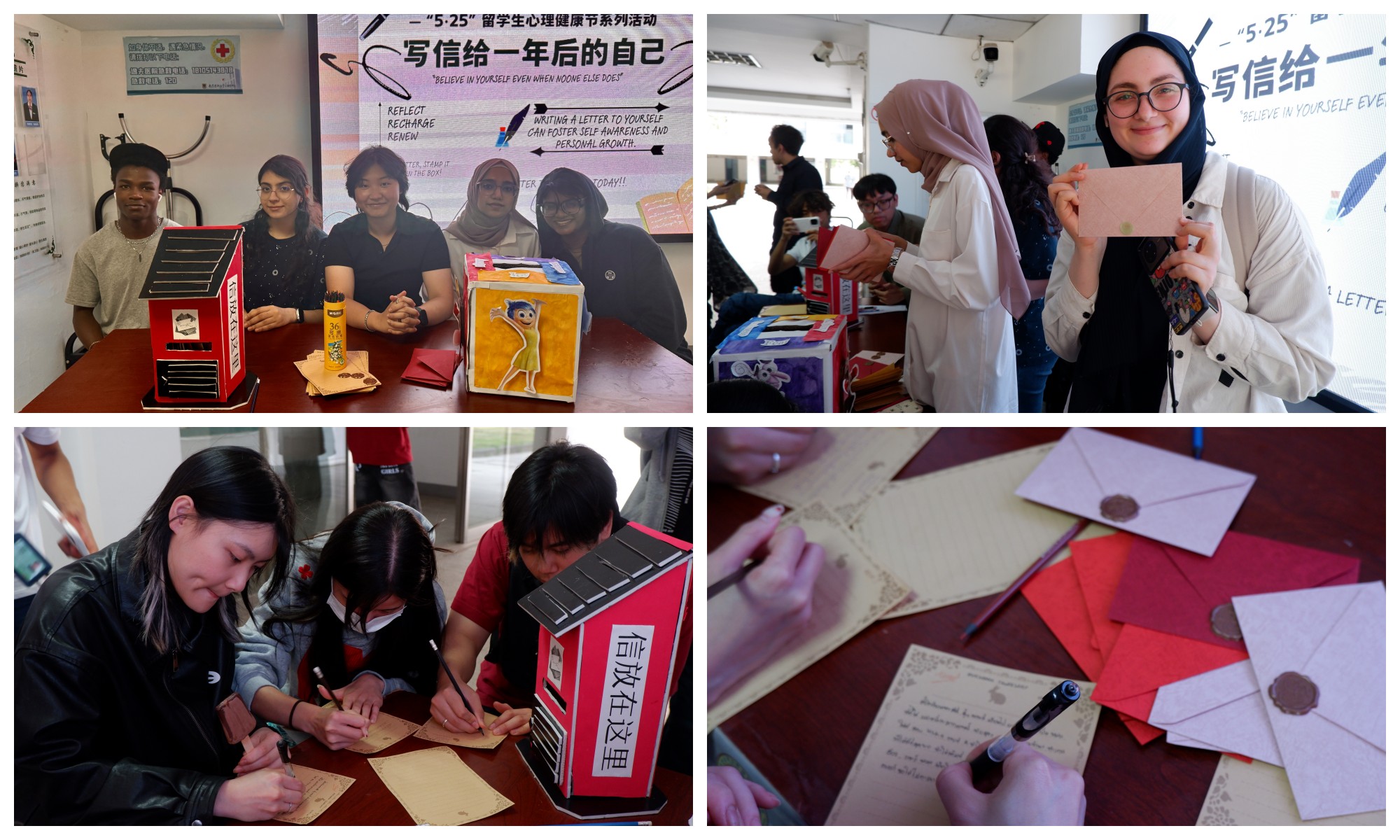 “写给一年后的自己”时光慢递活动受到广泛欢迎。参与者通过书信形式与未来对话,在文字中梳理心绪、规划成长。活动共收到150余封书信,将由学院统一保管并在明年此时返还,帮助留学生们见证自己的成长轨迹。