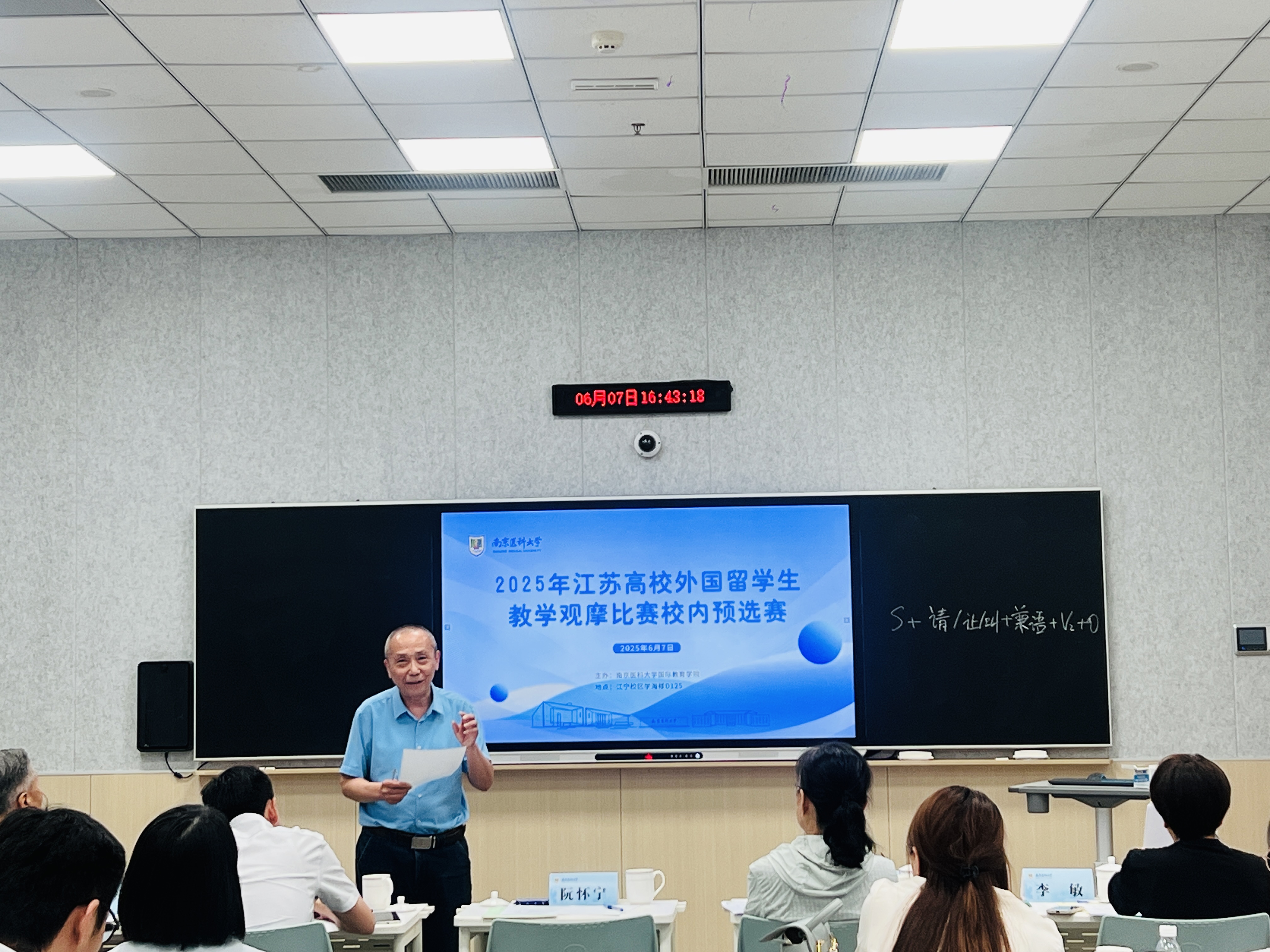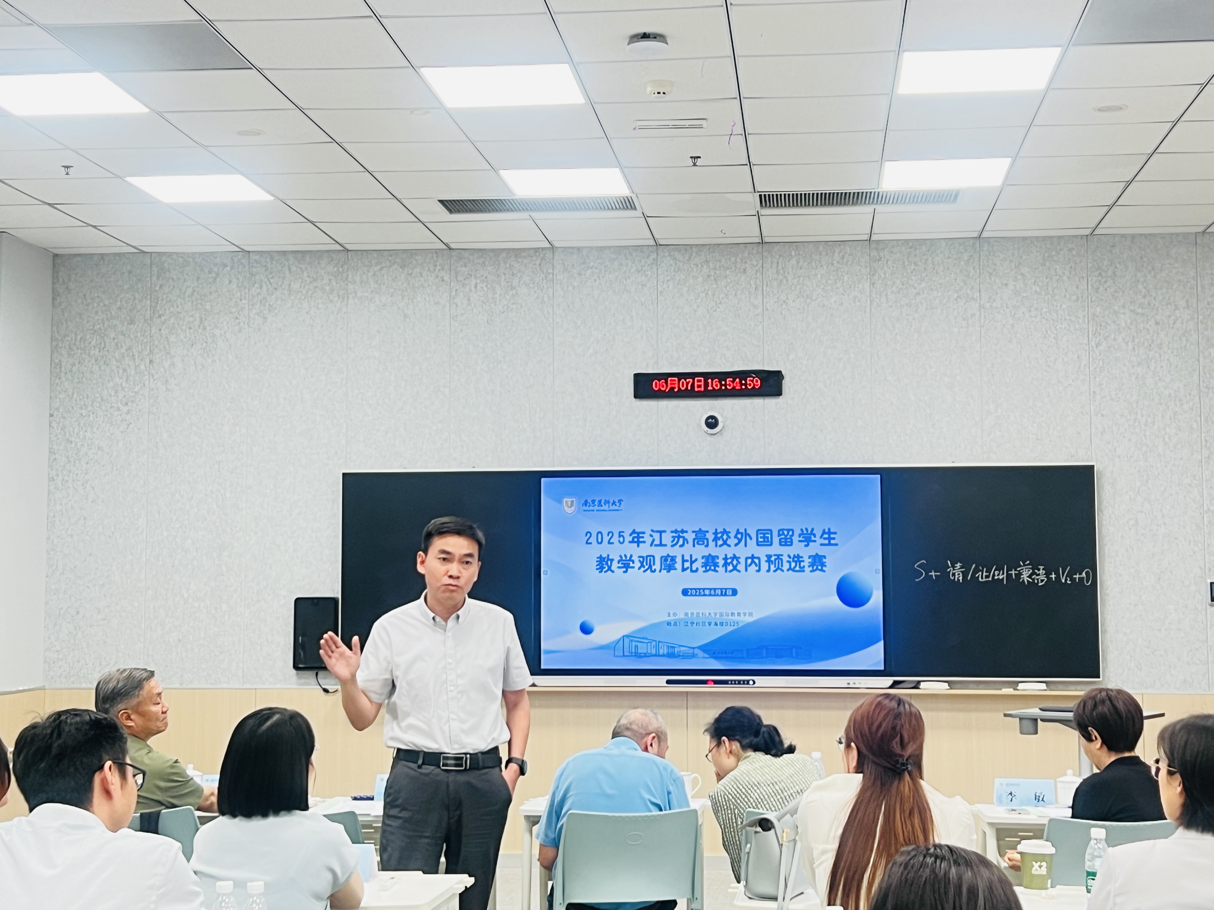 6月7日下午,我校2025年江苏高校外国留学生教学观摩比赛校内预选赛在江宁校区举行。来自马克思主义学院、基础医学院等9家学院的16名留学生教育一线的教师参加本次比赛。原河海大学教务处处长、留学生教育资深专家阮怀宁教授,校教学督导施荣根教授、顾萍教授,原国际教育学院副院长李敏教授和国际教育学院副院长刘继永担任本次比赛评委。