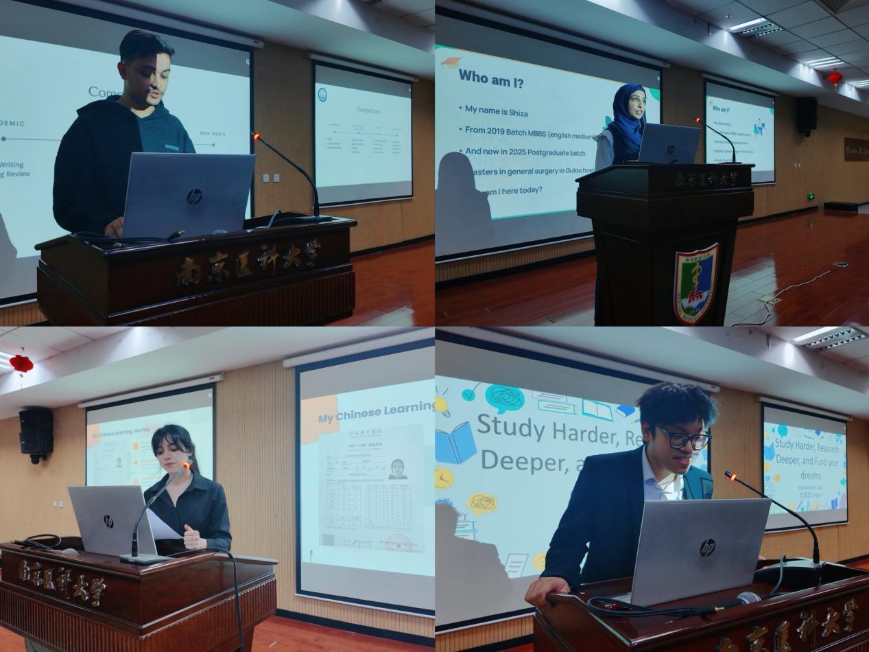 本次讲座特别邀请四位优秀学长学姐担任嘉宾,他们以“过来人”视角传经送宝。分享环节中,四位学长学姐依次登场,结合自身经历分享学业规划干货。第一位莫西布同学(2021级MBBS本科生)结合个人学业、志愿服务、社会实践经历等方面的成绩,分享了适应大学节奏、平衡学习与如何开展志愿服务和社会实践的实用建议;塔雅布同学(2025级外科学硕士研究生)拆解了本科到硕士的过渡要点,为深造规划提供指引;墨元同学(2024级临床医学本科生)分享了攻克中文、通过HSK6级的经验,强调语言能力的重要性以及如何在跨文化中快速适应并找到自己的节奏;尤泽龙同学(2022级MBBS本科生)则以年级第一、全额奖学金、4篇SCI论文、全国医学创新金奖的亮眼履历,分享了顶尖学业、科研入门及奖学金申请的技巧,并以座右铭激励在场同学。讲座现场掌声不断。分享结束后的问答环节,同学们争相提问,反响热烈。