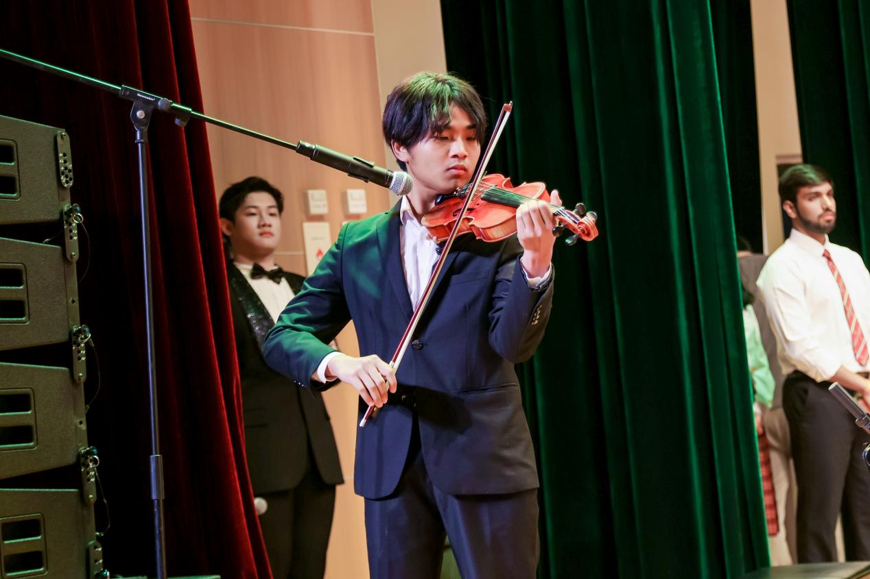舞台之上,节目异彩纷呈、意蕴绵长。本次展演融合多声部合唱、特色独唱、小提琴伴奏、箱鼓律动、创意手指舞等多元艺术表现形式,多元元素交织交融,赋予经典曲目全新生命力。学院现场啦啦队同步助阵造势,烘托热烈舞台氛围,婉转深情的歌声跨越山海国界,直抵人心,将整场晚会氛围推向高潮。